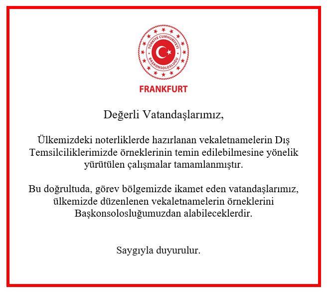 Bu doğrultuda, görev bölgemizde ikamet eden vatandaşlarımız, ülkemizde düzenlenen vekaletnamelerin örneklerini